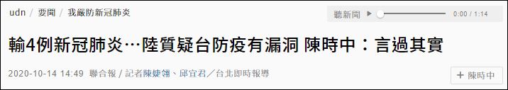 此外,台防疫部門13日稱,一名11日從江蘇返台的台灣居民為新冠肺炎輸入病例,並向大陸疾控部門通報。新華社記者10月14日下午獲悉,經聯繫溝通,台灣疾控部門14日下午來郵件確認,這名台灣居民12日核酸檢測報告結果為陰性。