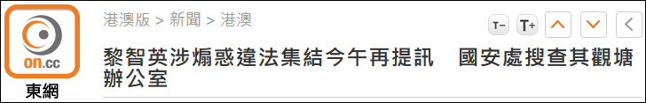 報道稱,就在15日早晨,香港警方14名探員到觀塘創紀之城搜查了黎智英名下其中一個辦公室,並從現場帶走了一批證物。