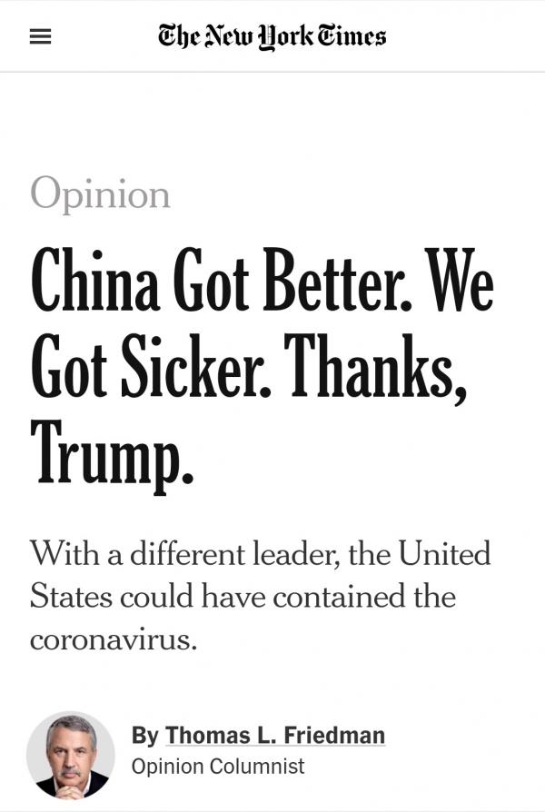 托馬斯·弗裏德曼:中國在恢復元氣,我們美國每況愈下謝謝你啊,特朗普