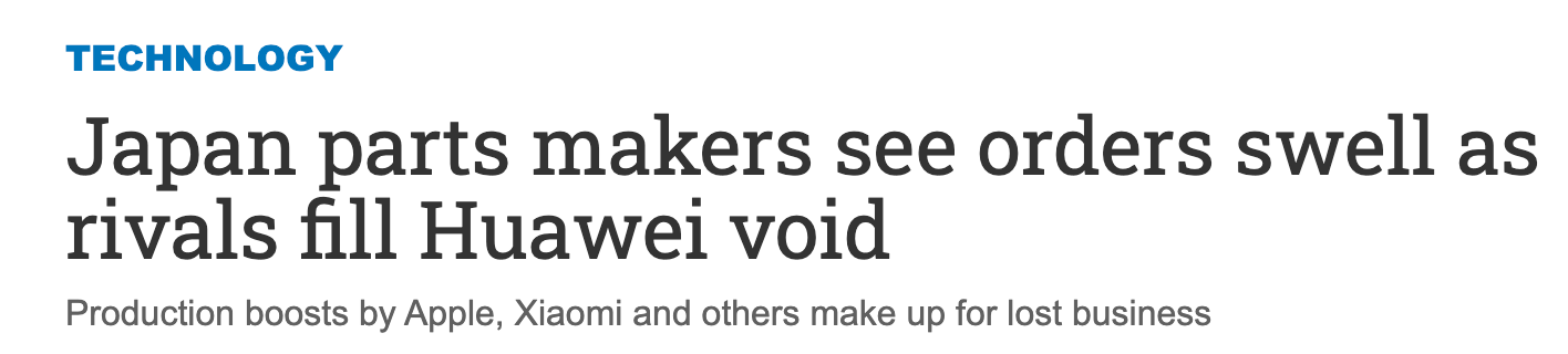 報道指出,由於華為遭美國製裁,中國手機制造商擔心美國政府會將禁令擴大至華為以外的中國公司,導致需求激增。