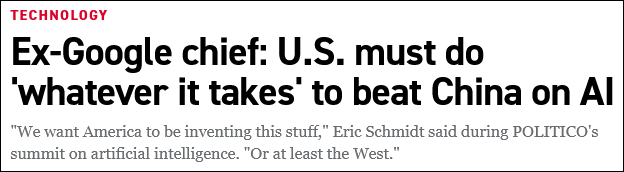 谷歌前CEO聲稱:要在AI領域擊敗中國,美國必須“不惜一切代價”