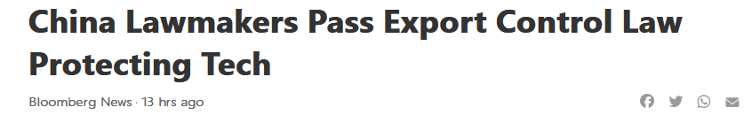 對於《出口管制法》涵蓋的範圍,彭博社援引央視的消息指出,全國人大常委會的此次立法適用於在華運營的所有公司,包括外商投資企業。不過,具體細節並未提供。