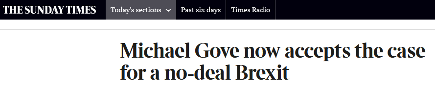 在《星期日泰晤士報》的文章裏,戈夫寫道:“這將要求歐盟的態度、政策以及政治都發生重大改變,才能讓事情迴歸正軌。”“就目前情況而言,(與歐盟的自由貿易協議)不可能發生,歐盟在上週峯會的決定,等於是宣告貿易談判已經結束。”