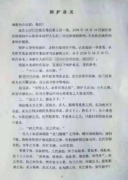近日,網傳一份“辯護意見”引發網友熱議。律師林維清在被告人胡某某販賣毒品罪上訴一案中為其提供刑事辯護援助,但在辯護意見中卻寫道,“自古律法只對心地善良之人寬饒其情”“只能以刑罰誅其惡行惡念。”並稱自己的委託人是“宵小之輩”“邪惡之徒”。