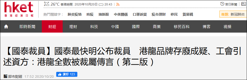 報道同時還強調,如果疫情大流行此後依舊沒有得到控制,那麼香港國泰航空公司未來再次進行裁員仍是可能出現的情況。