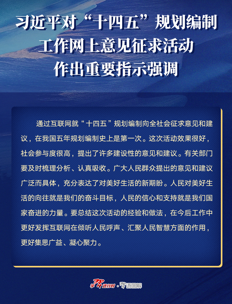 前不久,“十四五”規劃編制通過互聯網向全社會徵求意見和建議,這在我國五年規劃編制史上是第一次。這次活動社會反響熱烈,累計收到網民建言超過101.8萬條。