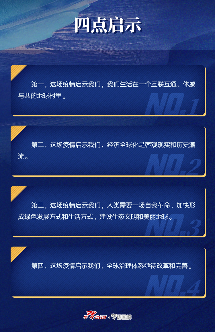 5年前,習近平主席在第70屆聯大一般性辯論上就構建人類命運共同體提出“五位一體”的總體路徑;3年前,習近平在聯合國日內瓦總部演講中進一步提出建設“五個世界”的總體佈局。今年聯大會議上,習近平結合國際社會對疫情的反思,提出了重要的“四點啓示”。
