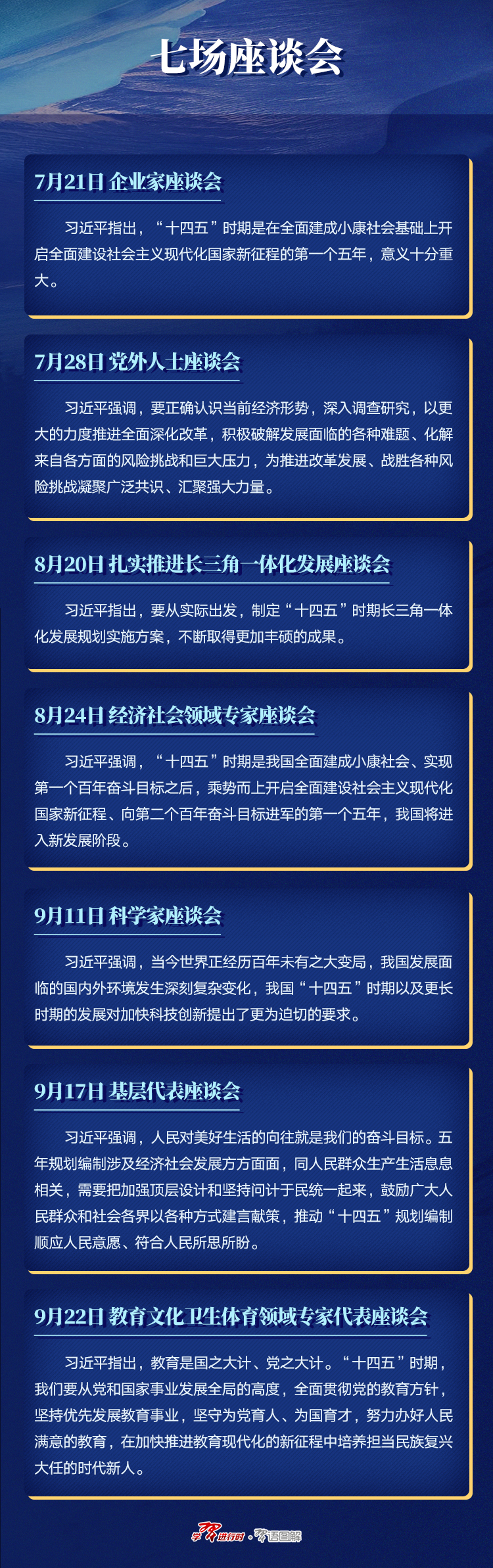 謀劃“十四五”時期經濟社會發展,是習近平近段時間的重要工作。9月中旬,習近平在湖南調研期間專門召開基層代表座談會,當面聽取基層幹部羣眾代表對“十四五”規劃編制的意見和建議。