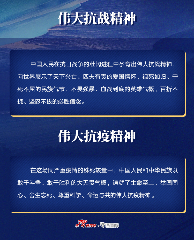 今年以來,面對突如其來的新冠肺炎疫情,以習近平同志為核心的黨中央團結帶領全國各族人民,進行了波瀾壯闊的抗擊疫情的人民戰爭、總體戰、阻擊戰,取得抗擊新冠肺炎疫情鬥爭重大戰略成果,統籌推進疫情防控和經濟社會發展工作取得顯著成效。9月8日,習近平出席全國抗擊新冠肺炎疫情表彰大會強調要“大力弘揚偉大抗疫精神”。他指出,偉大抗疫精神,同中華民族長期形成的特質稟賦和文化基因一脈相承,是愛國主義、集體主義、社會主義精神的傳承和發展,是中國精神的生動詮釋,豐富了民族精神和時代精神的內涵。