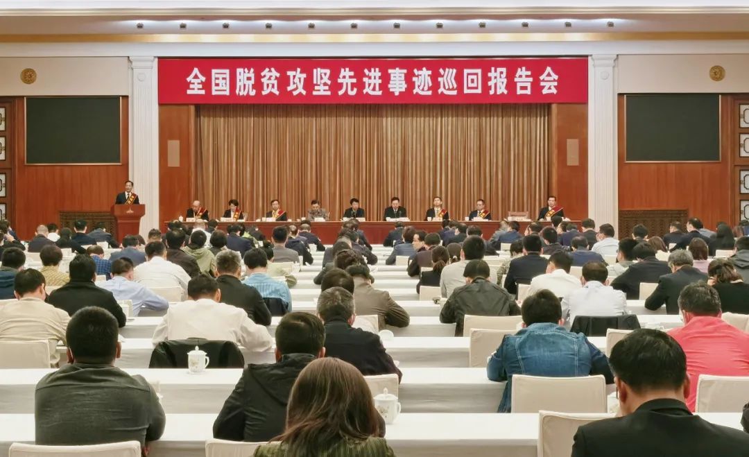 報告會傳達了習近平總書記對脱貧攻堅工作的重要指示和李克強總理批示精神。全國脱貧攻堅獎獲得者和獲獎單位代表——春秋航空股份有限公司董事長王煜,安徽省司法廳駐蕭縣馬莊村幹部焦鳳軍,福村寶醫療科技有限公司創始人兼首席執行官李亞傑,浙江省衢州市柯城區委常委、副區長貴麗青,安徽省宿州市委常委、泗縣縣委書記張志強,新疆沙漠棗業有限公司董事長李鵬,江西省吉安市委常委、井岡山市委書記劉洪,用樸實的語言、鮮活的事例,深情講述了奮戰在脱貧一線的生動實踐,感人至深、催人奮進。