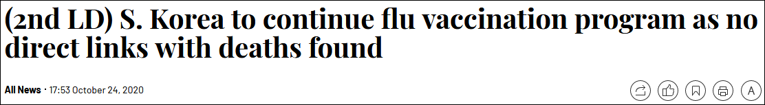 報道還指出,對於在未來幾周內是否應該繼續接種流感疫苗的問題上,韓國國內的一些醫學衞生組織也存在分歧。