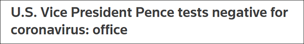 (觀察者網訊)據路透社當地時間10月26日報道,美國副總統彭斯辦公室當天早上發表聲明稱,彭斯及其妻子的新冠病毒檢測結果均呈陰性。
