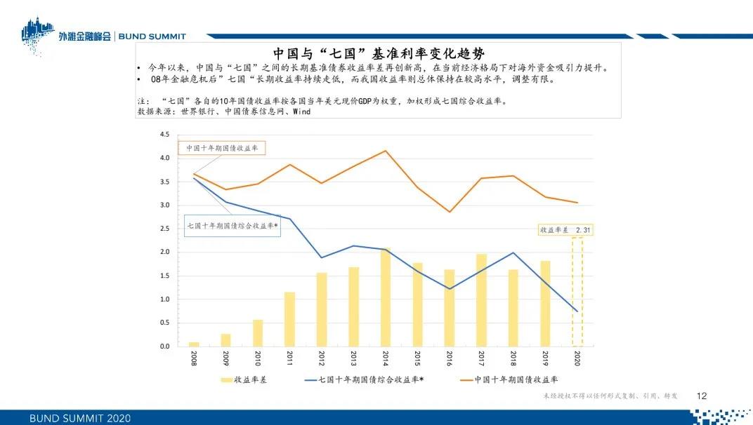 從長期的資產配置角度來看,中國的基礎國債利率與七國相比,我們一直是處在相對高的水平,七國的利率一直在往下走,這也是最近這些年總體的趨勢。