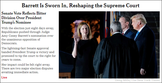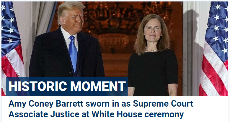 《紐約時報》:巴雷特宣誓就職,重塑了聯邦最高法院