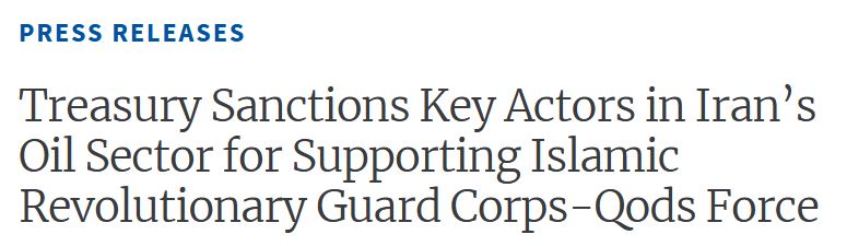 美國財政部聲稱,上述列入黑名單政府和企業是伊朗伊斯蘭革命衞隊“聖城旅”的重要融資來源。作為伊朗負責海外運作的精英部隊,“聖城旅”去年被美國指定為恐怖組織。