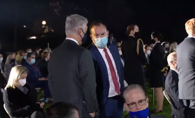 共和黨參議院領袖麥康奈爾也沒有提前透露當晚是否會去白宮。他曾表示,出於對白宮防疫措施的懷疑,自己從8月份開始就沒有去過白宮。