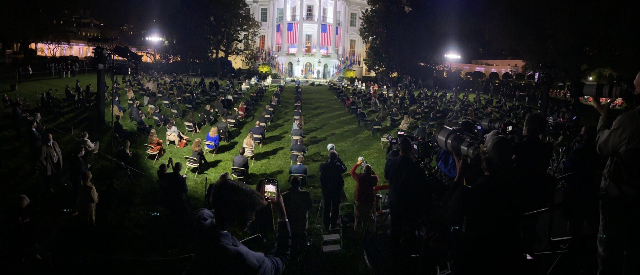 一個月以前的9月26日,白宮在玫瑰園舉行巴雷特的大法官提名儀式,至少200人蔘加。嘉賓們聚集在一起,幾乎無人佩戴口罩。此後,包括特朗普夫婦在內、多名出席活動的嘉賓陸續感染新冠病毒,白宮相關人員至少34人確診。