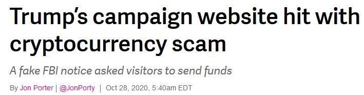 (觀察者網訊)當地時間10月28日,綜合《星島日報》、The Verge、《紐約時報》消息,美國總統特朗普的競選網站當天一度遭遇黑客入侵。