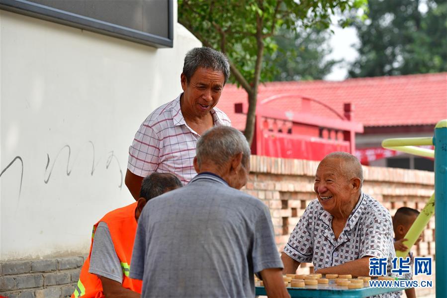 河南蘭考東壩頭鄉張莊村的幾位老人在下象棋(2018年6月20日攝)。新華社記者 馮大鵬 攝