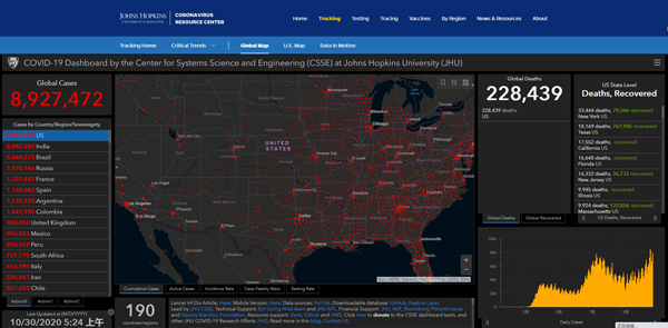 (觀察者網訊)根據美國約翰斯·霍普金斯大學實時數據,截至北京時間10月30日5時24分,美國累計新冠確診病例8927472例,累計死亡228439例。過去24小時,美國新增確診病例89784例,新增死亡病例1018例。