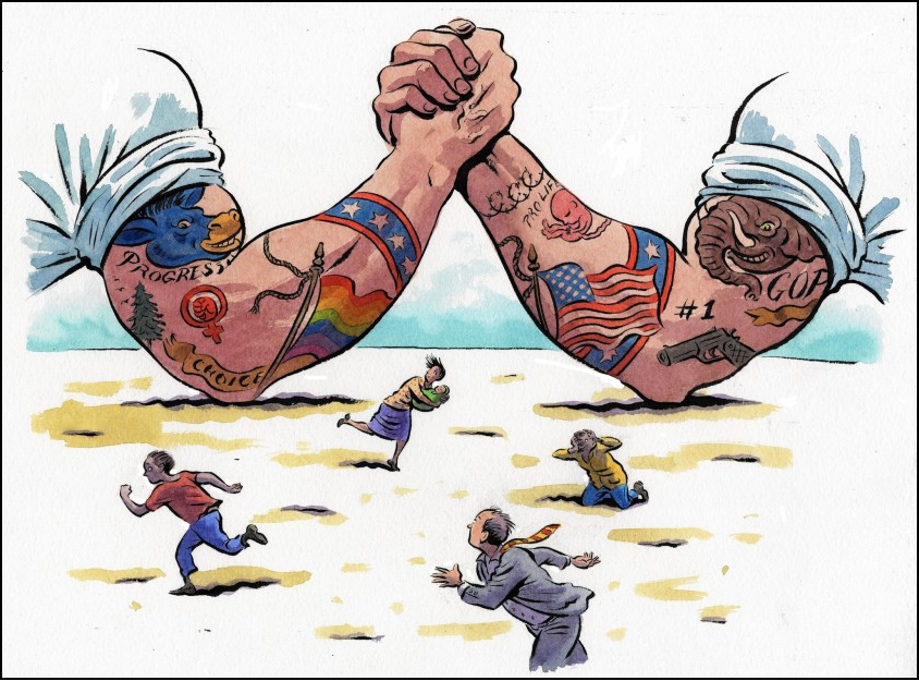 民主黨支持女權、“墮胎權”、同性“婚姻”,共和黨支持“嬰兒生命”(反墮胎)、“持槍權”、“美國優先”——兩黨忙着在高度意識形態化的議題上角力,置國計民生於不顧(L.A. Times)