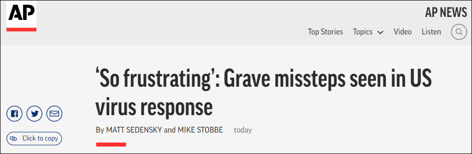 美聯社:“太讓人沮喪了”,美國防疫的嚴重失誤