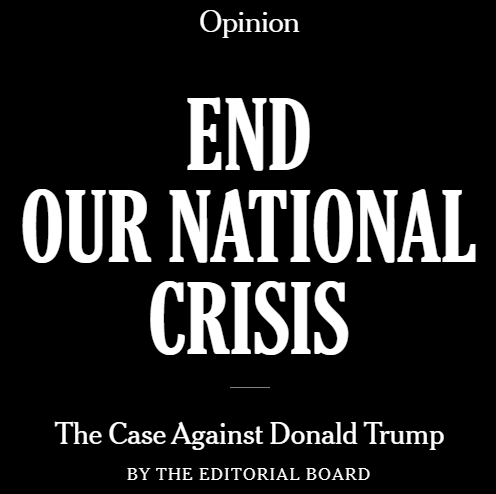 這已不是《紐約時報》首次公開聲討特朗普。本月16日,其編委會就發表長篇社論《結束我們國家的危機》向特朗普傾瀉怒火,稱其為“史上最糟糕的美國總統”。