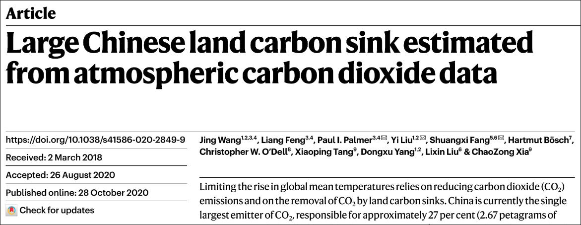 巧的是,《自然》雜誌於10月28日發表了中國科學院大氣物理研究所的研究成果,表明我國森林強大的固碳能力在以往的研究中被低估,BBC也於次日跟進報道。