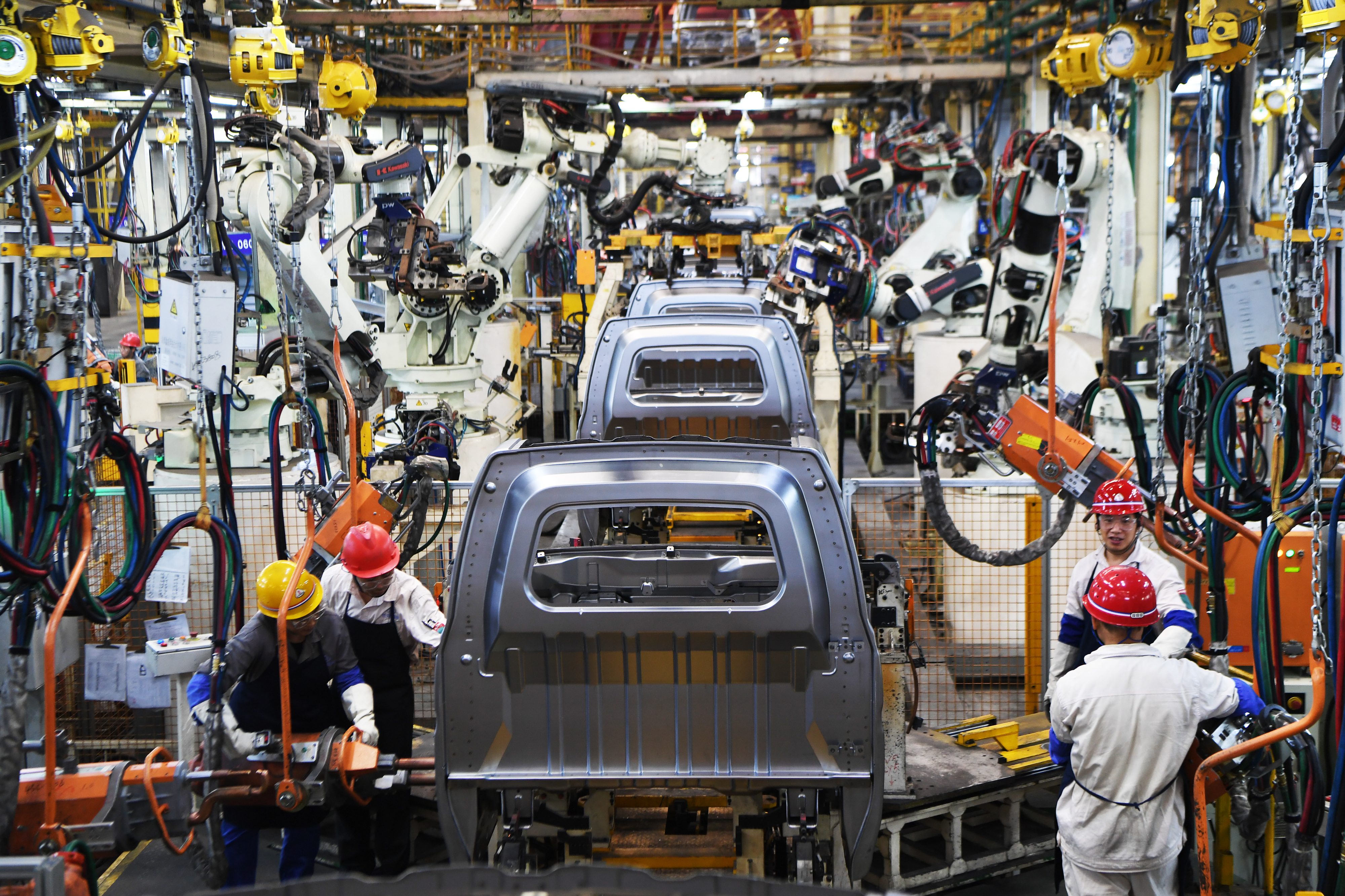 9月23日,工作人員在位於重慶萬州的長安跨越智能化生產車間內作業。(新華社圖)