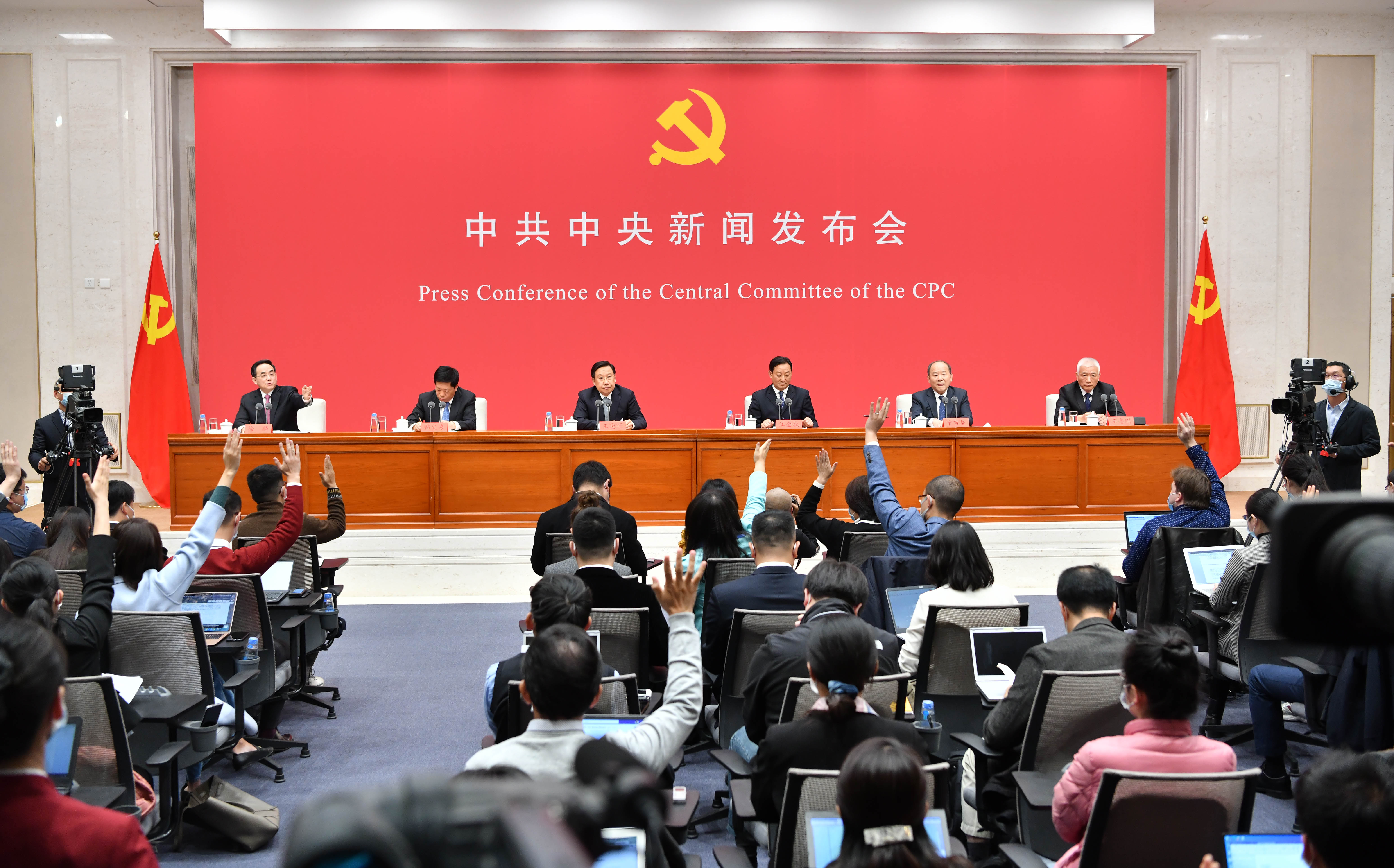 10月30日,中共中央在北京舉行新聞發佈會,介紹黨的十九屆五中全會精神,並答記者問。(新華社圖)