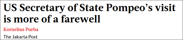 “蓬佩奧的來訪更像是告別”,《雅加達郵報》文章截圖