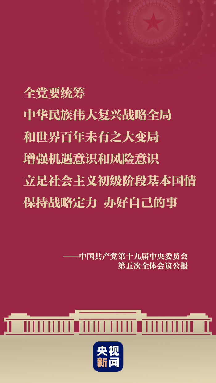 10月26日至29日,中國共產黨第十九屆中央委員會第五次全體會議在北京舉行。全會深入分析了我國發展環境面臨的深刻複雜變化,認為當前和今後一個時期,我國發展仍然處於重要戰略機遇期,但機遇和挑戰都有新的發展變化。