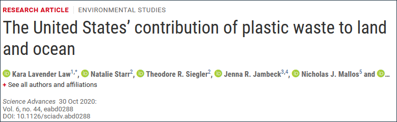 作為參與人員之一、美國海洋教育協會的拉文德·勞(Lavender Law)認為,美國的高收入和高消費,可能是造成美國塑料垃圾生產量巨大的原因。勞還預測,儘管目前還沒有明顯的證據,但今年的疫情將加劇塑料垃圾的生產,因為有更多的廢棄個人醫護用品被丟棄。