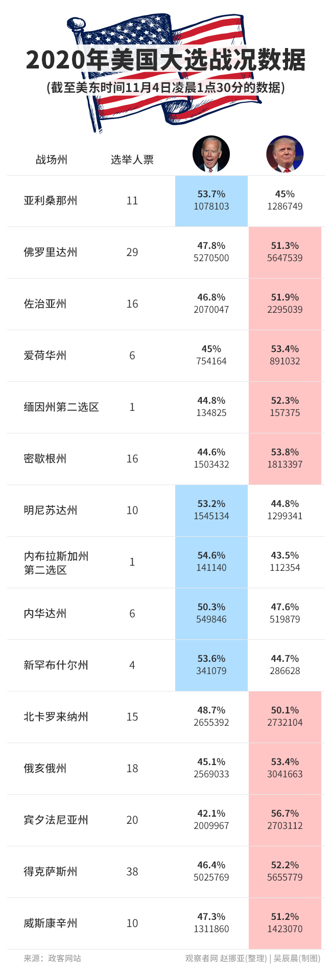 數據來自“政客”網站,統計時間截至美東時間4日凌晨1點30分左右