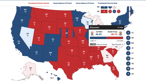 威斯康辛(10票),可能要打官司了。已開出89%的票,拜登實現反超,領先0.3%、一萬票出頭。民主黨的票倉就是密爾沃基縣(有雄鹿對的那個)和戴恩縣(省城麥迪遜所在地)兩個大城市。戴恩縣及其周邊已經基本點完,做不了更多貢獻了。密爾沃基點了90%,預計拜登還能在多拿9000票。今年大名鼎鼎的基諾沙還有30%的票沒開出來,目前特朗普大幅領先,已經能搬回近2000票。剩下絕大多數縣都是特朗普領先,但總票數和未開數都太少,總共能為特朗普追回萬把票,最終不管誰領先,兩人差距估計也就幾千票。重新計票和起訴應該都在日程表上了。