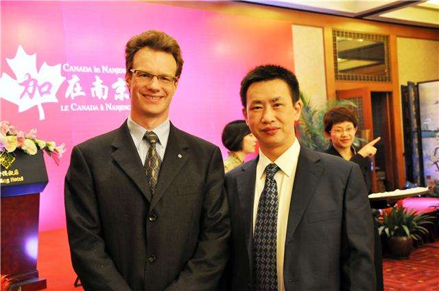 林皓(右)與加拿大推廣大使大山在南京出席商務活動