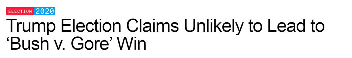 美媒在報道大選法律爭議時,不約而同地提到了2000年布什訴戈爾一案。當時,最高法院阻止了佛羅里達州重新計票,從而幫助小布什以極為微弱的優勢贏得了佛州,並最終贏得大選。