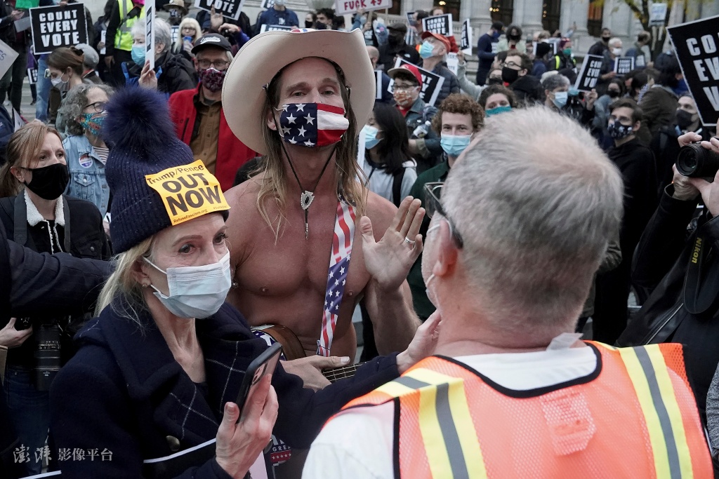 當地時間4日,紐約有示威者舉行街頭抗議,反對特朗普要求“停止計票” 圖自:澎湃影音平台