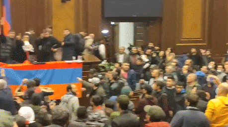 部分民眾闖入政府和議會大樓,佔據了總理辦公室和議會會議大廳等地。亞美尼亞議長所乘坐的車輛遭到了抗議民眾的攔截,議長本人被民眾從車內拖出並遭到了毆打。