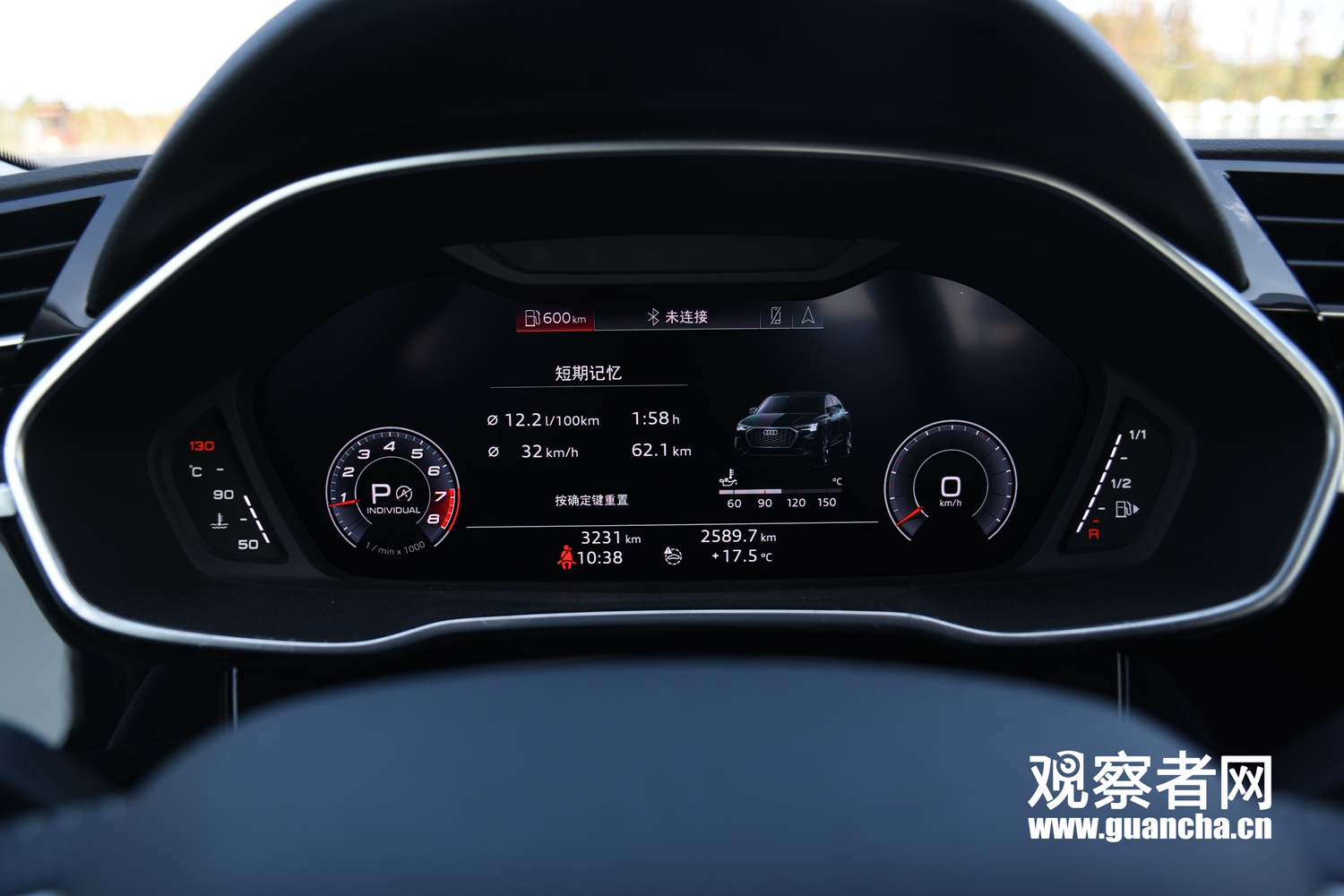 燃油經濟性方面,2.0T版奧迪Q3轎跑的工信部綜合油耗為7-8L/100km之間,在同級的轎跑SUV中處於中等水平。實測下來,該車型在運動模式、S檔下百公里油耗在11-12L左右;在普通模式、D擋下大約8-9L左右。如前文所述,只有在保持S擋的狀態下才能夠取得酣暢淋漓的競速體驗,相應的油耗增加也是不可避免的。