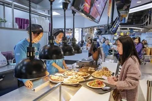 這裏是盒馬鮮生金橋店。 每到飯點,都是這裏最忙碌的時候。