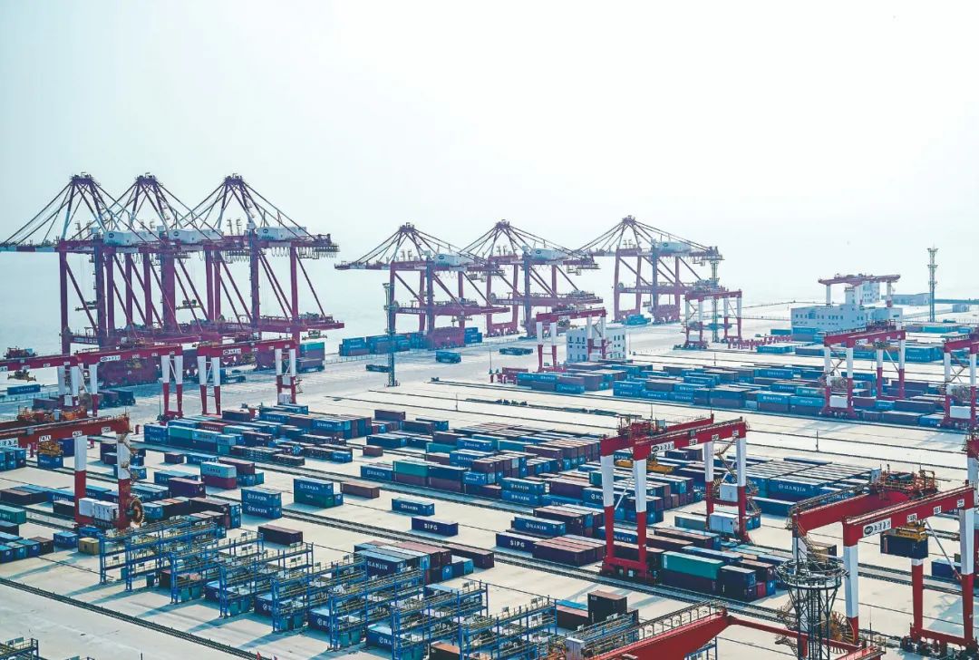 每天 ,洋山港四期自動化碼頭吞吐集裝箱超過1萬標箱,世界最大單體全自動化智能碼頭晝夜繁忙。