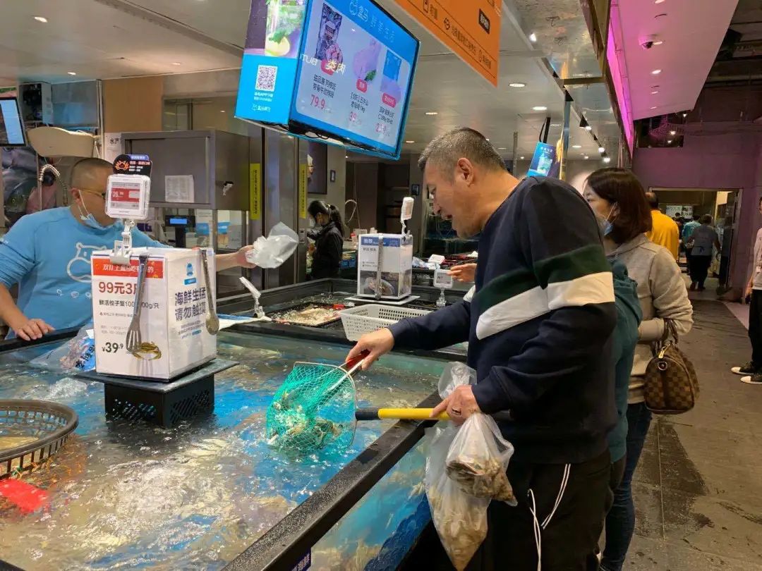 顧客現點鮮活商品,直接線下堂吃——這種如今早已遍佈全國的 “盒馬模式” ,當年就是浦東金橋的這家門店裏誕生的。
