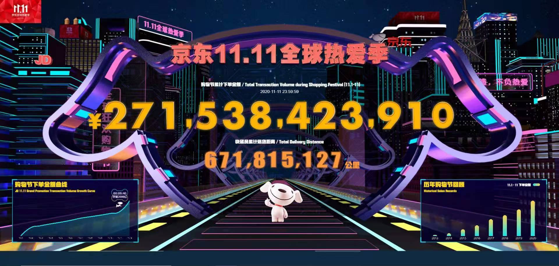觀察者網·大橘財經訊(文/盧思葉 編輯/莊怡)2715億,京東雙11寫下了一個新紀錄。11月1日0時至11月11日23:59,京東11.11全球熱愛季累計下單金額突破2715億元,創近年來最高增速。