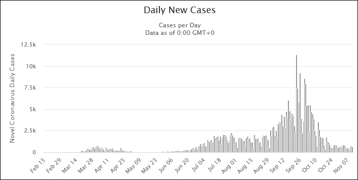 以色列每日新增病例數變化 圖表來源:Worldometers