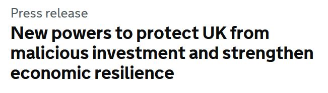 新法案意味着,任何可能威脅英國民眾安全的交易都不會被放過,並確保防護能力較弱的企業不被企圖傷害它們的潛在投資者盯上。