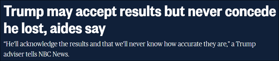 NBC:助手們説,特朗普可能會接受(選舉)結果,但永遠不會承認自己失敗