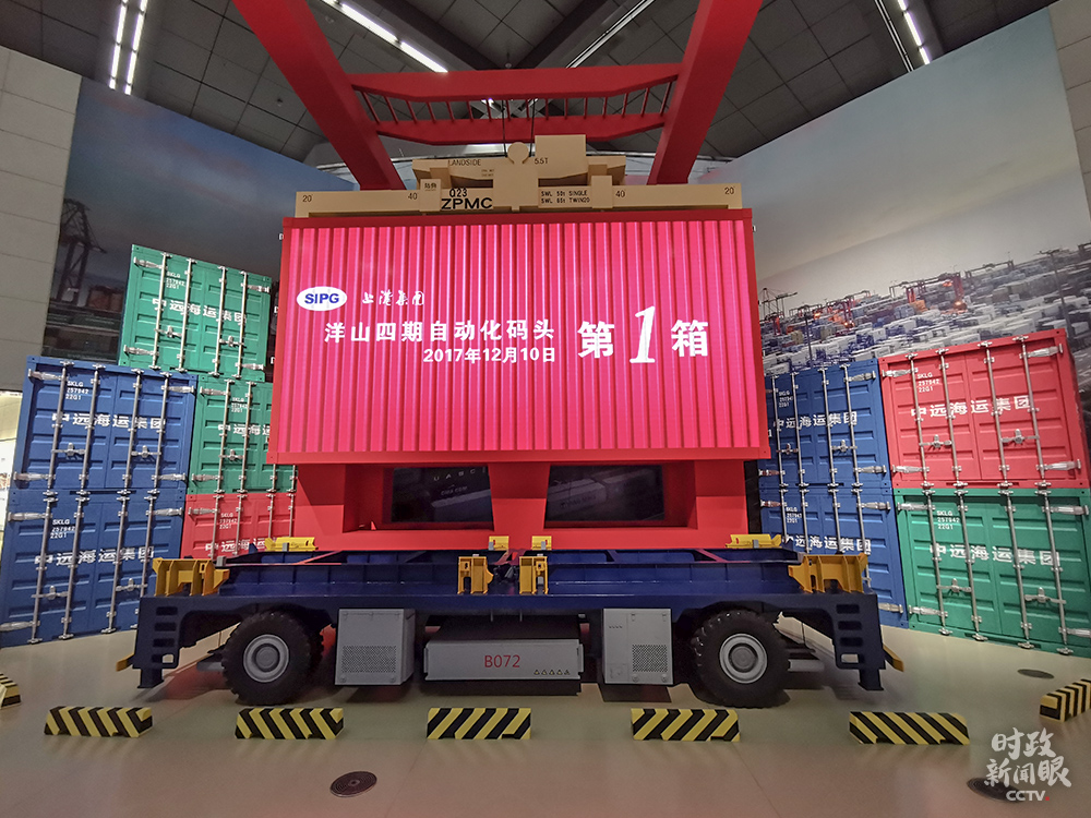 △“浦東開發開放30週年主題展”的洋山港展區(總枱央視記者王冰拍攝)