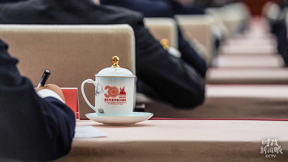 △會場的水杯上印有“浦東開發開放30週年”字樣(總枱國廣記者李晉拍攝)