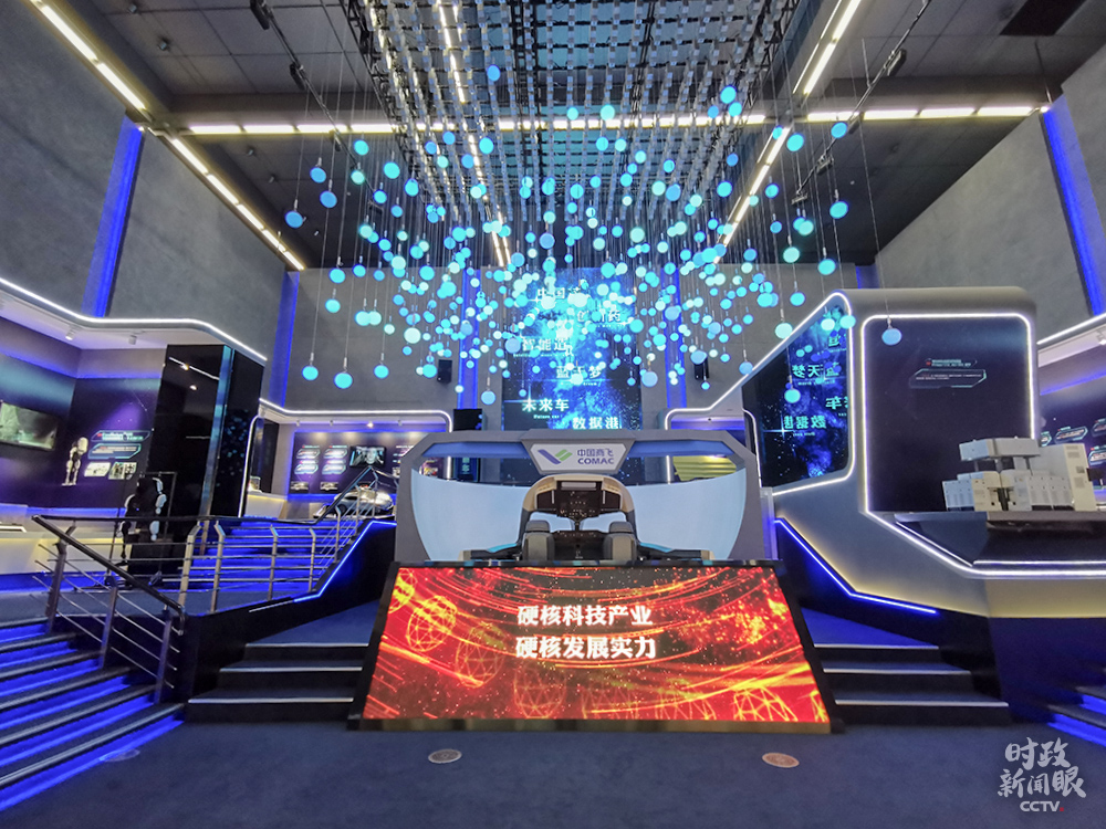 △中國商飛展區。2017年5月,我國首架具有完全自主知識產權的大型噴氣式客機C919在浦東國際機場首飛成功,中國商飛公司是這架飛機的主製造商。(總枱央視記者王冰拍攝)